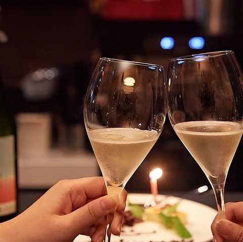 落ち着いた雰囲気の横並びカウンター席で 大切な人との時間をお過ごしください デザートプレートも対応