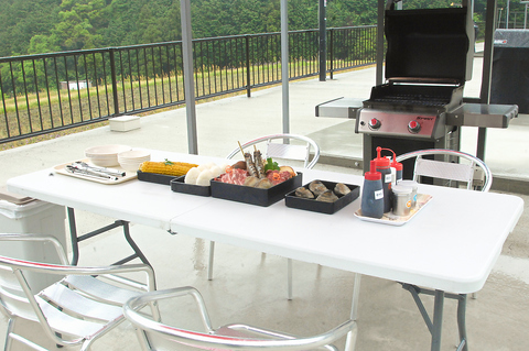 | テーブル | 6名様×20 | 1テーブル大人6名様まで利用可能 食材持ち込みプラン<料金に含まれるもの>テント、ガスグリル、椅子、テーブル<ご用意していただくもの>食材・飲み物・食器類・調理道具★飲み物の自動販売機(アルコール)は設置しております。★最寄りのお買い物ができる場所は、車で50分くらいのところにございます。 |