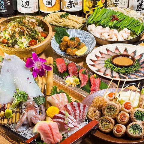 博多筑紫口から徒歩30秒の駅チカ!完全個室や、ついたてで仕切りがある掘り炬燵のお席など、2名様の少人数から最大50名様の貸切まで幅広くご対応が可能です☆巻き串がお楽しめいただけるコースや、もつ鍋や活きイカの姿造りコースなど、観光や宴会など様々なご用途でお使いいただけるラインナップでご用意しております!いつでもご相談下さい!!
