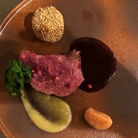 信州各地の生産者から直接仕入れる肉、ジビエ、魚、野菜をフレンチの技法で 素材を活かした料理に仕立てます。 メイン料理は、長野県産の炭で焼き上げる炭火焼がおすすめです。 下記メニューの他にも当日の仕入れ状況によってメニューが変わります。