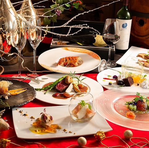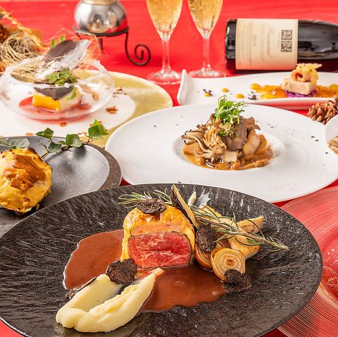 前菜からメイン、パティシエ特製デザートまでお楽しみ頂けるこだわりのフルコースをご用意。お料理のみ・飲み放題付き各種ご用意しておりますので、デートやお誕生日のお祝いなどの特別な日のお食事からご宴会まで幅広くご利用いただけます♪