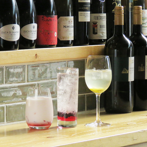 おつまみや前菜も豊富にご用意しています。冷菜(さっと食べれる小鉢系)のメニューはALL350円♪ワイン、ビール、カクテル、ハイボール、日本酒、イタリアのお酒、自家製シロップのお酒やノンアルコールドリンク、ソフトドリンクなど種類豊富に取り揃えております!仕事帰りのサク飲みや少人数での各種宴会など様々なシーンにご利用ください♪