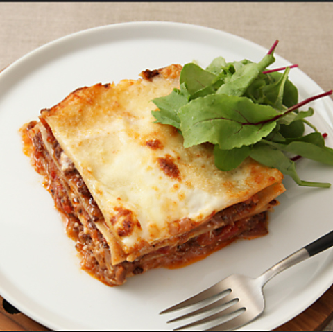じっくり煮込んだ自家製ミートソースと濃厚なベシャメルソースを、モチモチのパスタ生地で幾層にも重ねて焼き上げました。とろけるチーズが香ばしく広がる、心もお腹も満たされるイタリアの定番オーブン料理です。