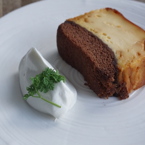 表面をキャラメリゼしたフレンチトーストにたっぷりの生クリームをトッピング。午後のリラックスタイムにおすすめ。川沿いの景色と共に贅沢な時間をお楽しみください。