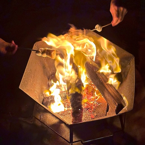 【心地よい炎を囲んでBBQを楽しめる】秋~冬の時期は特におすすめ!BBQと一緒に焚き火もお楽しみいただけます。外で楽しむ揺らめく炎は格別。気心知れた仲間と、焚き火を眺めながらゆったりとした語らいのひとときをお過ごしください。