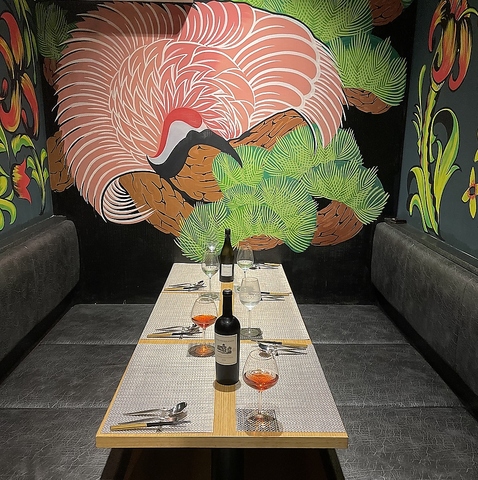 ≪京都河原町駅からすぐ≫壁のペイントは全て手描きのアート作品☆お料理だけでなく、つい写真を撮りたくなるような内装が印象的な店内★レトロ・和モダンなど様々で、お席によって雰囲気がガラっと変わります◎
