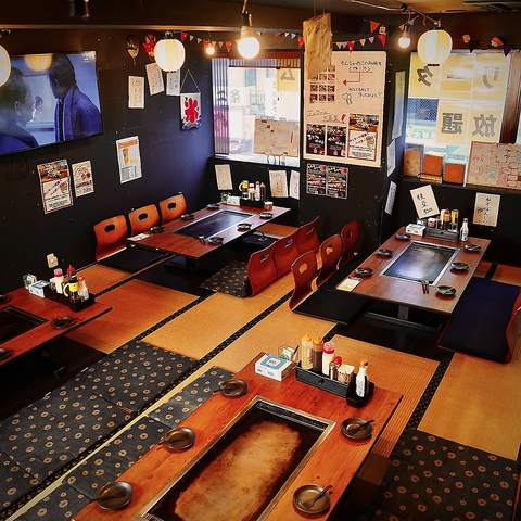 【半個室&個室完備】各6名様着席可能なテーブル個室と、座敷の半個室をご用意しています。座敷は3部屋の連結も可能!もちろん全席鉄板完備です。人数等お気軽にお問合せください♪ 店内鉄板以外のお料理も豊富!鉄板熱くて使いたくない人でも満足!!※当店はワンドリンク制となっています。