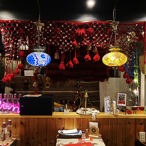 【異国情緒な空間】店内はインドの伝統と温かみを感じる落ち着いた空間。異国情緒あふれる装飾やカラフルな布、ランプが彩りを添え、本場の雰囲気を演出します。テーブル席はゆったりと配置され、グループでもリラックスしてお食事を楽しめます。貸切やパーティーにも最適な、居心地の良い空間をご提供♪