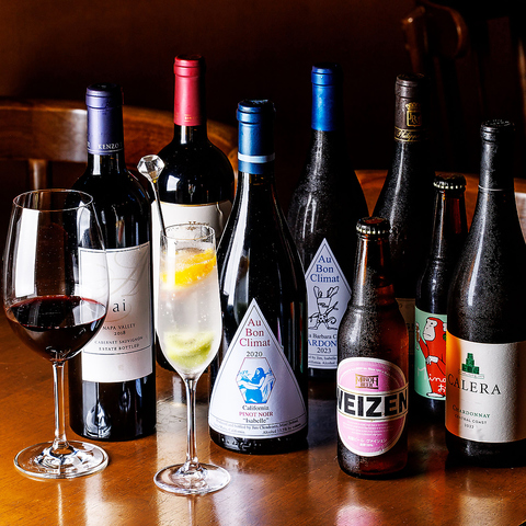 J.S.A.認定ソムリエのマスターが厳選したワインとスパークリングを豊富にご用意しています。現地からステンレス樽で直送される樽生ワインは、他では味わえないフレッシュさです。