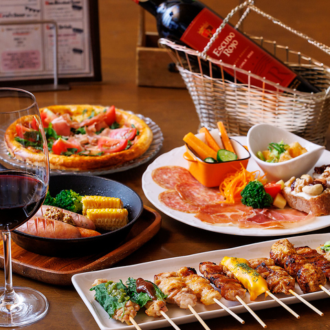 じっくりと焼き上げる串焼きは、せせりやももといった定番から、チーズイタリアンやハニーマスタードなどの変わり種まで種類豊富にご用意。厳選ワインとの相性も抜群です。