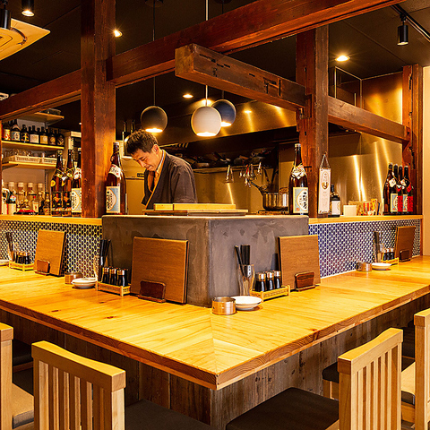 【カウンター席は1名~♪】お一人でもゆっくりお楽しみいただけるカウンター席をご用意。大鍋で作るおでんや炭火での調理を目の前で楽しむことができます。店主との会話も楽しめる、落ち着いた雰囲気の席ですので、お仕事帰りなどの一人利用も大歓迎!