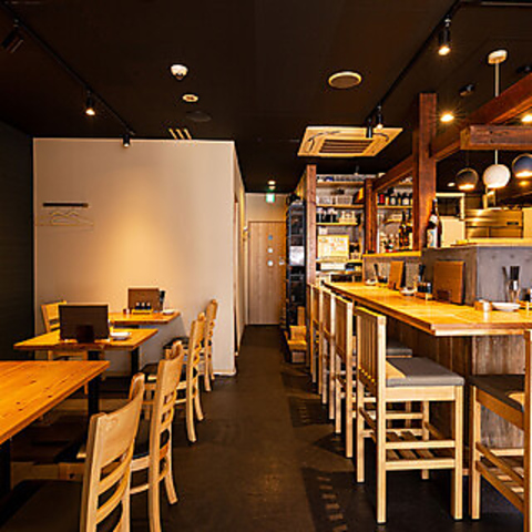 当店では、カウンター席とテーブル席をご用意しております。仕事帰りにふらっと一人飲みを楽しみたい方や、お二人でのご利用にはカウンター席がおすすめです。目の前で調理する様子を楽しみながら、リラックスした雰囲気でお食事をお楽しみください。
