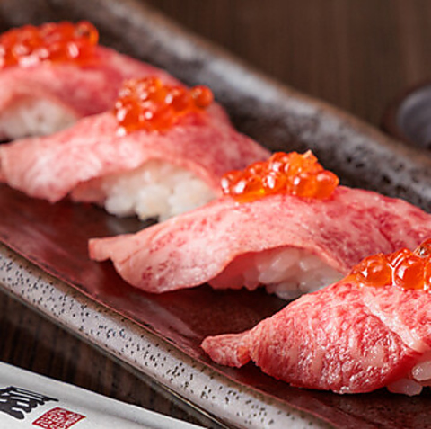 海外生まれの肉寿司を江田屋風に独自アレンジ!肉本来の美味しさを堪能でき、牛肉が肉の脂分との相性がばっちりのシャリが美味しさの秘訣。さらに秘伝のタレといくらが、ほどよいアクセントとなっています。味覚だけではなく、視覚でも楽しめる肉寿司として人気です。