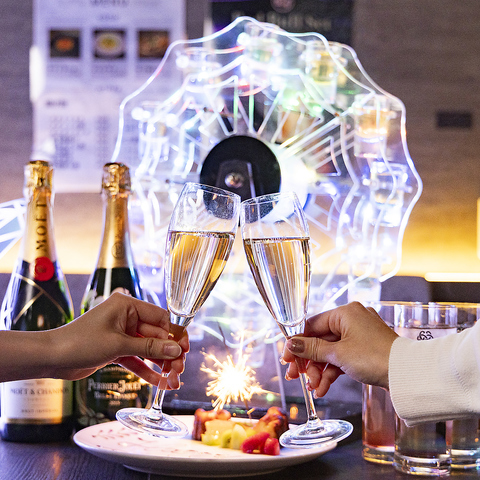 大切な人との記念日や、友人の誕生日にぴったり!お好きなコースに+1,300円(税込)で、メッセージ入りプレートをご用意します。主役にサプライズを届ける、特別な夜の演出に最適♪さらに乾杯を華やかにするシャンパン(モエ・アルマンドなど)も多数ご用意。予約時にメッセージ内容をご相談ください。