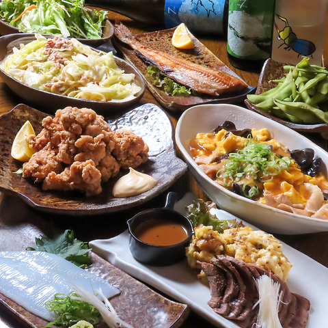 各種宴会に最適なコースをご用意しています。会社の飲み会からご家族の食事、友人との集まりなど。当店自慢の絶品料理を心ゆくまで堪能できるのはもちろん、全国の地酒や焼酎、ウイスキー、生搾りサワーなど種類豊富なドリンクも充実。座敷で足を伸ばせる空間や落ち着いた雰囲気のカウンター席もございます!