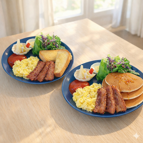 オーストラリア定番の朝食はランチにも。カリカリベーコン・ふわふわ卵。トーストかパンケーキをお選びください。トーストはバター・ココナッツ・ベジマイトからお選びいただけます。お得なドリンクセット・デザートセットあります。是非ラミントンとご一緒に、オーストラリアカフェランチをお楽しみください。