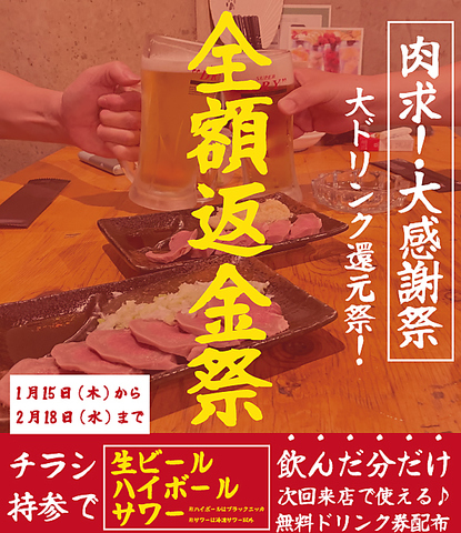 好評につきまたまた開催します!ソフトドリンク以外の単品アルコール商品をご注文いただいた数だけ、5月に使えるドリンクチケットをお配り致します。4月の間にドンドン貯めて、5月にドーンと使ってください!例)ビール3杯、レモンサワー2杯、ハイボール3杯→ドリンクチケット8枚お渡しします。