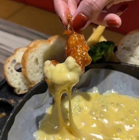 女性に大人気の【エビ&チキンUFOフォンデュ】はエビカンジョン6本とチキン5個をお好みフレーバーから2種類お選び頂けます!!チーズたっ~ぷり漬けて、お召し上がりください!!インスタ映えも間違いなし◎