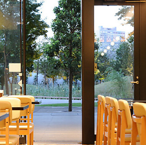 品川駅近の品川シーズンテラス2F。窓の外に広がる緑地を眺めながら、ゆったりとした時間を過ごせます。都会の喧騒から離れた開放的な空間は、ランチタイムやカフェ利用にも最適です。広々とした景色を眺めながら、自慢のたこ焼きやお好み焼きをご堪能ください。