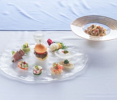 天井の高い海を一望できるおしゃれなインテリアで装飾された店内はリゾート気分を味わえます。シェフこだわりの創作料理やお酒をごゆっくりとお楽しみ頂けます。女子会や気の置けない仲間や家族と、特別なランチタイムをお過ごしください。