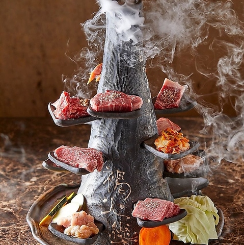 原始時代を描いた伝説的アニメの火山をイメージして作った当店の名物メニュー!特カルビや特ロース、ホルモン、タン、希少部位など、上質はお肉はその日のおまかせ◎豪華に盛り合わせます。煙を吐く火山はインパクトも格別!お誕生日や大切なゲストへの、サプライズにおすすめです。