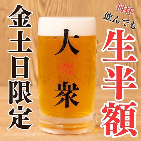なんと金土日生半額のスペシャルイベントを毎週金曜日開催中!今だけお得な大衆韓国にぜひ一度ご来店下さい