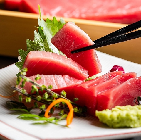 天然にも負けず劣らずの脂身と身の締まりがある「近大生まれ本まぐろ」をご提供♪天然以上とも言われる甘い脂身が特徴の近大生まれの本まぐろは舌の上でとろけます♪焼酎・日本酒と合わせてどうぞ!
