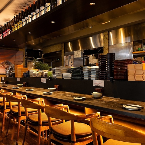 テーブル下のライティングがオシャレなカウンター席!万全の感染症対策として最新の換気システムを導入!