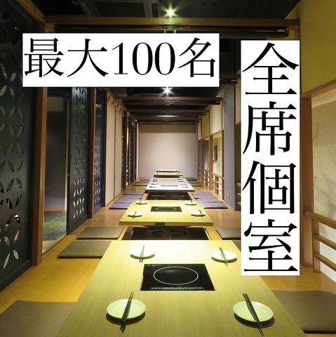 完全個室席完備!各種宴会は個室席でご利用下さい!最大100名までご利用可能!人数は相談下さい!