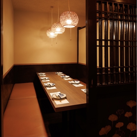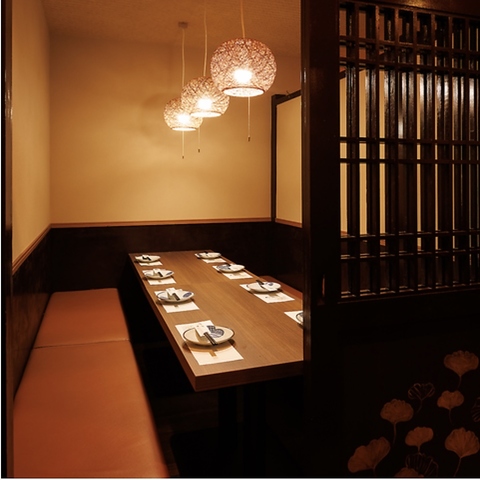 団体様のご利用にも最適です。洗練された空間は、優しく灯る間接照明が印象的な個室席です。個室席のご予約はお早めに!人数に合わせたお席をご提案させていただきます。