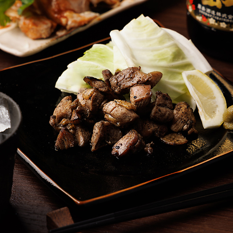 [鹿児島県産さつま知覧どりモモ焼き]鹿児島県産「さつま知覧どり」の中でも、旨みの強いモモ肉を使用。シンプルな味付けで、素材の良さが際立ち、添えたキャベツやレモンが後味をさっぱりとまとめます。お酒との相性抜群な自慢の逸品です。
