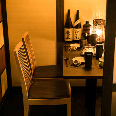 [2~4名様]程よい囲まれ感で周りを気にせず、デートや接待、女子会にも最適。料理とお酒をゆっくり味わえるよう、テーブル間や動線にも配慮し、心地良いおこもり空間となっております。