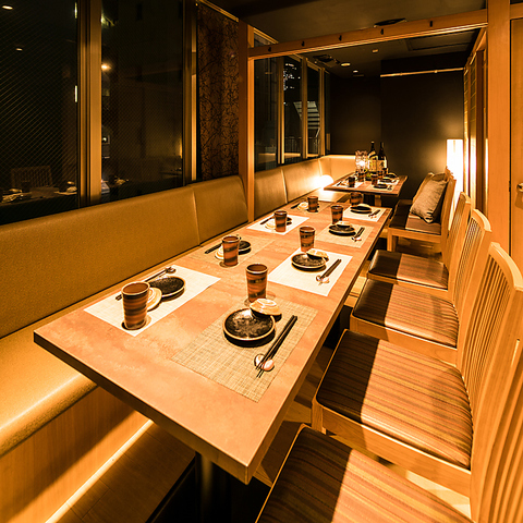 [2~4名様]大きな窓からの景色が開放感を添えつつ、扉で周りの視線をしっかりカット。デートや記念日、気の合う仲間との語らいに最適。おこもり空間で味を伸ばしてゆったりくつろげます。