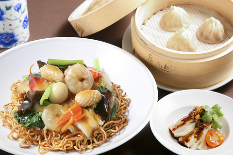 ◇京鼎樓贅沢セット (小籠包3個/本日の前菜/海老のチリソース/お好きな麺or飯)