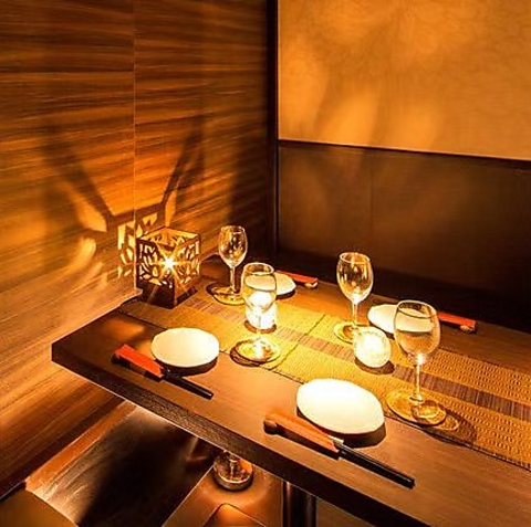 個室席をご用意しております。2名様~ご利用可能★少人数様でのデート、誕生日、接待から会社宴会、友人との飲み会、記念日など様々なシーンに幅広くご利用可能になっています◎ゆったりと時間を忘れ充実したお時間をお過ごし下さい。ご要望がありましたらお気軽にお問い合わせ下さい♪