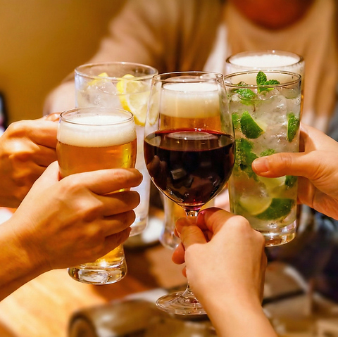 ビールやワインをはじめ、料理に合わせて楽しめる飲み放題プランをご用意。宴会はもちろん、気軽な集まりにも使いやすい内容です。時間を気にせず、食事とお酒をゆっくり楽しめます。