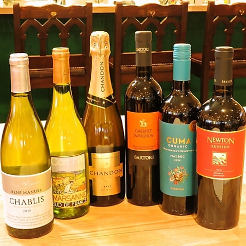 オーガニックワインにもこだわり世界各地からワインを仕入れ。お料理に合ったワインをご案内いたします。