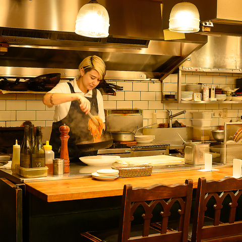 目の前でスタッフが調理をしています。好みの味付けにアレンジできるのもカウンター席の特権!?