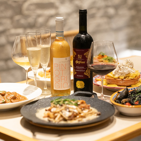 料理をさらに引き立てる厳選ワインを豊富に取り揃えています。世界各国の人気銘柄から、季節に合わせたおすすめボトルまで、多彩なラインナップをご用意。軽やかな白、深みのある赤、スパークリングなどお好みに合わせてお選びいただけます。デートや女子会、会社宴会など幅広いシーンで、料理とワインのマリアージュを気軽にお楽しみください。