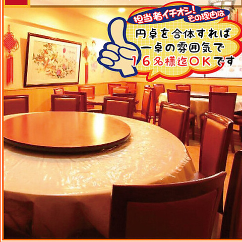 ◆広々としたスペースの店内◆店内には、赤を基調とした雰囲気が広がる円卓のテーブル席がございます。100席以上ある広々とした店内は、多くのお客様の宴会やお祝い事などにもご利用されています。様々な要望にお応えできるよう努めていきますので、まずはご相談ください。
