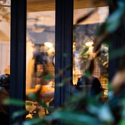 ガラス張りで明るい店内に加え、オープンテラス席もご用意しております。天気の良い日はもちろん、夜には柔らかな照明に照らされ、都会の喧騒を忘れる落ち着いた雰囲気に包まれます。