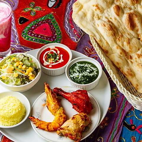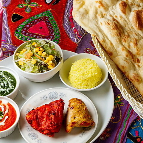 ・2種類選べるカレー(ALL 単品カレーメニューの中からお選びください) ・ナン(プレーン) ・ライス(プレーン) ・タンドリーチキン 1P ・タンドリー海老 1P ・サラダ ・デザート ・ドリンク1杯 ※写真はイメージです