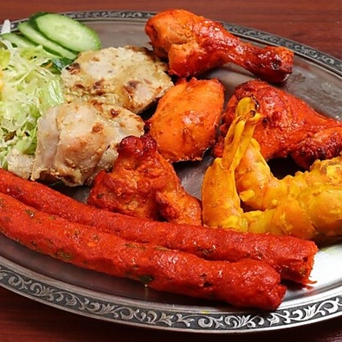 スパイシーなタレに漬け込み、高温の窯で一気に焼き上げたタンドリーチキンやシークカバブの盛り合わせです。余分な脂が落ちてヘルシーながら、肉汁をしっかり閉じ込めたジューシーな仕上がり。ビールやカクテルなどのお酒との相性も良く、宴会のメイン料理としても喜ばれる豪華な一皿です。