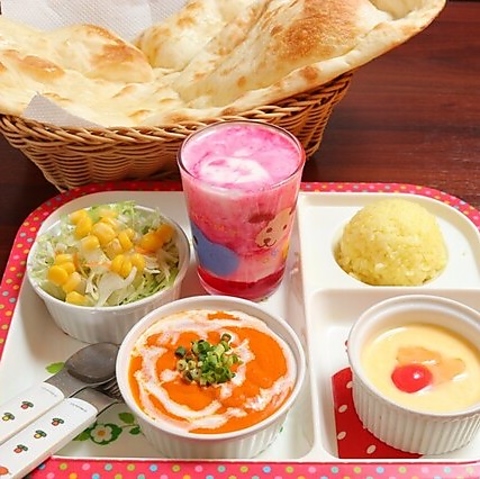 お子様セットもあるので、ご家族でのランチに最適。焼きたての大きなナンに、子供たちも笑顔がこぼれます。