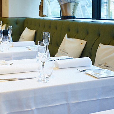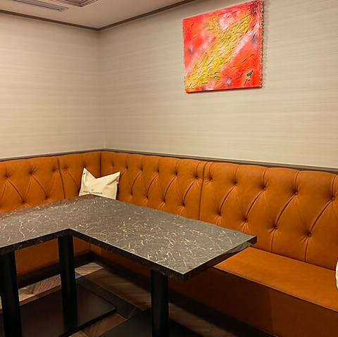 4名様掛けのソファー席です。ゆったりとした座り心地と洗練されたインテリアが、会話を楽しむひとときに最適です。居心地の良さとプライベート感を兼ね備えたソファー席で、上質な時間をお過ごしください。