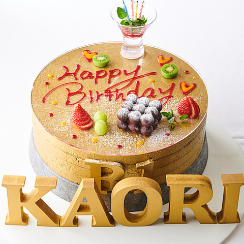 誕生日記念特典♪立体的なネームプレートでサプライズ成功間違いなし!1700円以上のコース予約の場合、+1000円でご提供♪お席のみ予約の場合、レストラン3000円、バー5000円にて承ります。事前に内容をお知らせください。内容によりアレンジ相談可能です。