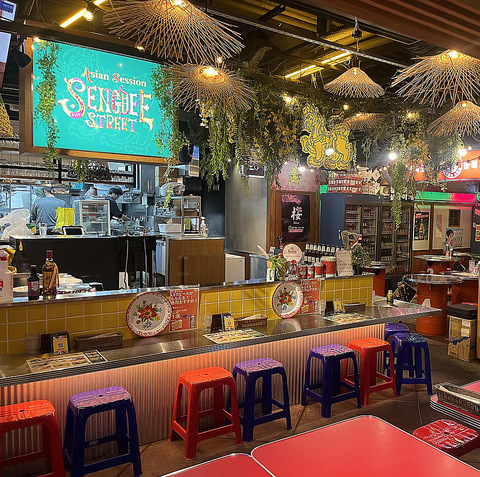 愉快で賑やかな空間をお楽しみください♪合計7軒の専門店が登場♪活気あふれる賑やかな店内には、さまざまな用途に使いやすいカウンター席やテーブル席を完備。お一人様はもちろん、ご友人や職場の方とのお集まりの場にも最適です◎