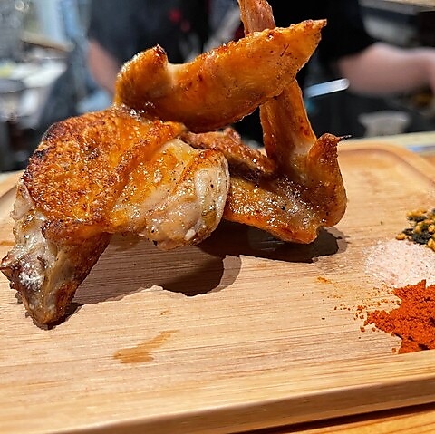 宮崎地鶏を代表する名物料理。力強い歯ごたえが自慢の「赤鶏の親鳥」を厳選!豪快な炎で一気に焼き上げることで、炭の香ばしさが肉に乗り、食欲を最大限にそそります◎噛みしめるほどに凝縮された肉の旨みが口の中いっぱいに溢れ出す逸品は、添えられた柚子胡椒とも最高にマッチ!ぜひ焼きたてのうちにお召し上がりください♪