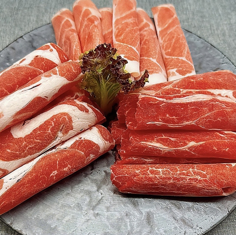 火鍋にはやっぱり野菜!!お肉もおすすめ☆薄くスライスしたラム肉をさっとスープにくぐらせてお召し上がりください。また、当店はお鍋の食材が種類豊富!牛肩ロースや牛センマイ、ハチノスなどはもちろん、アヒルの砂肝、タンなど本場の食材も豊富にご用意しております。