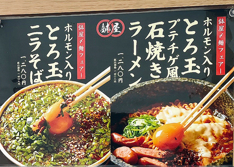 期間限定で登場!「とろ玉プテチゲ風 石焼ラーメン」vs.「とろ玉ニラそば」!どちらもホルモンたっぷり♪